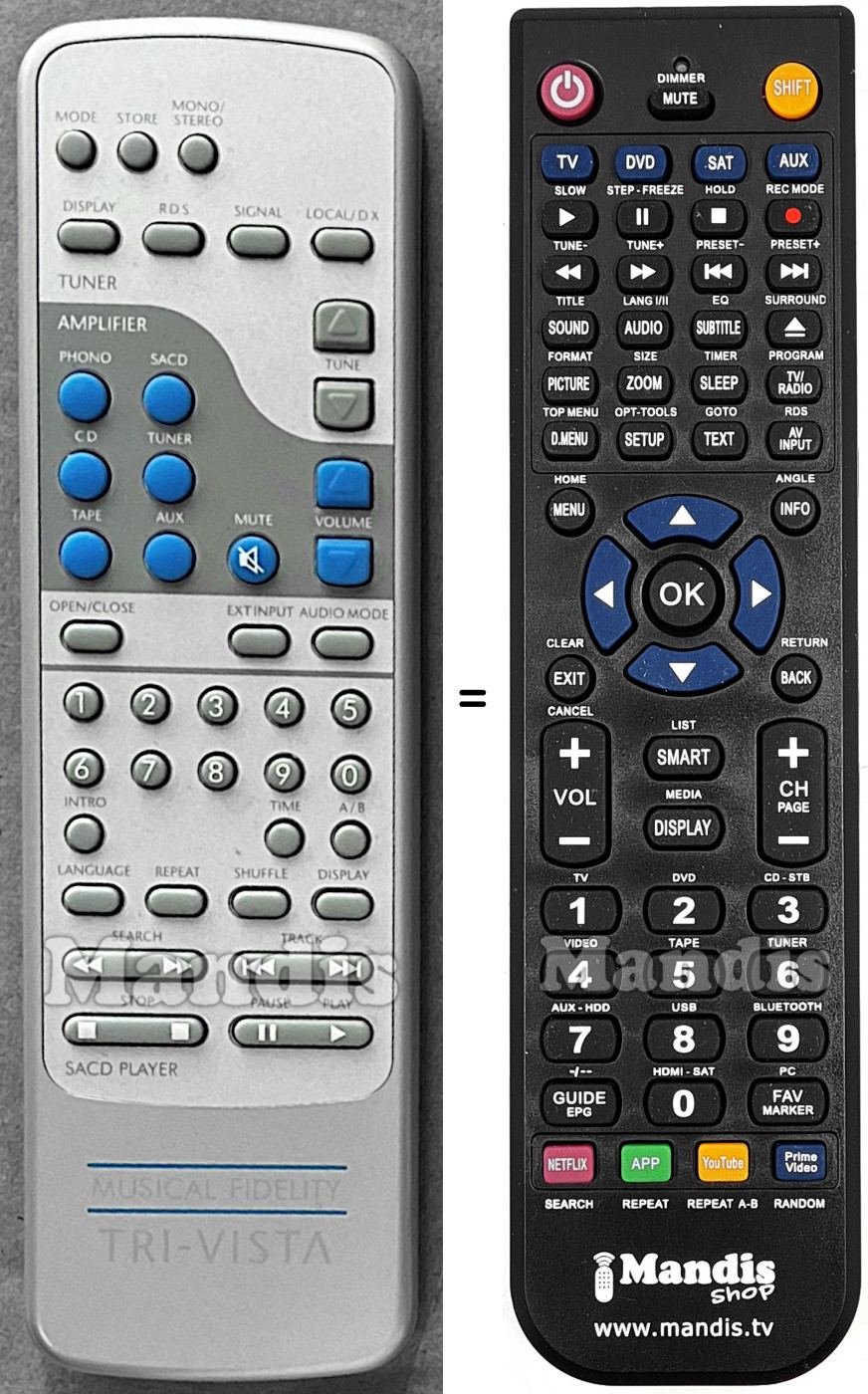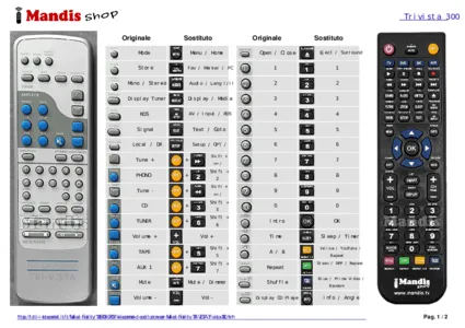 Questo telecomando sostituisce completamente il tuo TRI-VISTA (Trivista 300) e offre tutte le funzioni dell'originale.