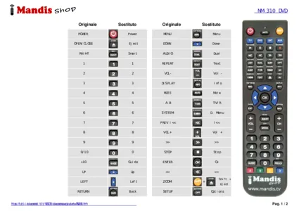 Questo telecomando sostituisce completamente il tuo NM-310 e offre tutte le funzioni dell'originale.