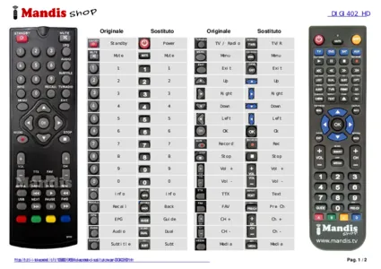 Questo telecomando sostituisce completamente il tuo DIGI402HD e offre tutte le funzioni dell'originale.