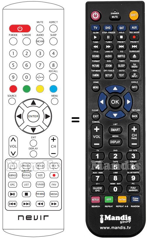 Questo telecomando sostituisce completamente il tuo NVR7059TTG19B e offre tutte le funzioni dell'originale.