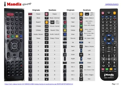 Di seguito, vi mostreremo la corrispondenza tra ciascun pulsante del telecomando originale e il pulsante che svolge la stessa funzione sul telecomando di sostituzione. In alcuni casi, potrebbe essere necessario premere il tasto SHIFT prima di premere un altro pulsante per eseguire determinate azioni. Queste funzioni aggiuntive sono spesso poco utilizzate e sono incluse per facilitare la comprensione del telecomando di sostituzione, o perché il telecomando originale ha più pulsanti rispetto al suo equivalente.