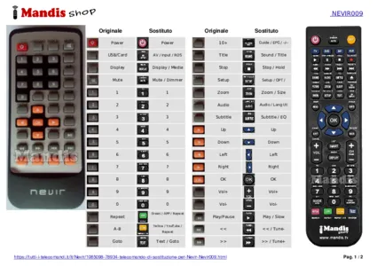 Questo telecomando sostituisce completamente il tuo Nevir009 e offre tutte le funzioni dell'originale.