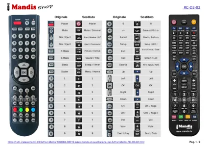 Questo telecomando sostituisce completamente il tuo RC D3 02 e offre tutte le funzioni dell'originale.