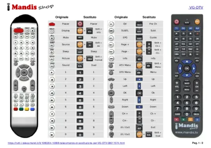 Di seguito, vi mostreremo la corrispondenza tra ciascun pulsante del telecomando originale e il pulsante che svolge la stessa funzione sul telecomando di sostituzione. In alcuni casi, potrebbe essere necessario premere il tasto SHIFT prima di premere un altro pulsante per eseguire determinate azioni. Queste funzioni aggiuntive sono spesso poco utilizzate e sono incluse per facilitare la comprensione del telecomando di sostituzione, o perché il telecomando originale ha più pulsanti rispetto al suo equivalente.