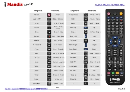 Inizio > Marche > Telecomandi OCEAN > Telecomando per OCEAN MEDIA PLAYER HDD > Distribuzione interattiva dei tasti OCEAN MEDIA PLAYER HDD