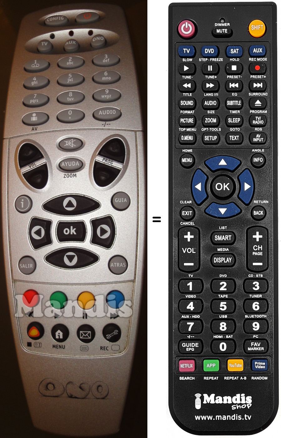 Telecomando che sostituisce l’originale in tutte le sue funzioni.