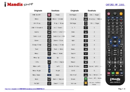Inizio > Marche > Telecomandi OXFORD > Telecomando per OXFORD MP 1000 > Distribuzione interattiva dei tasti OXFORD MP 1000
