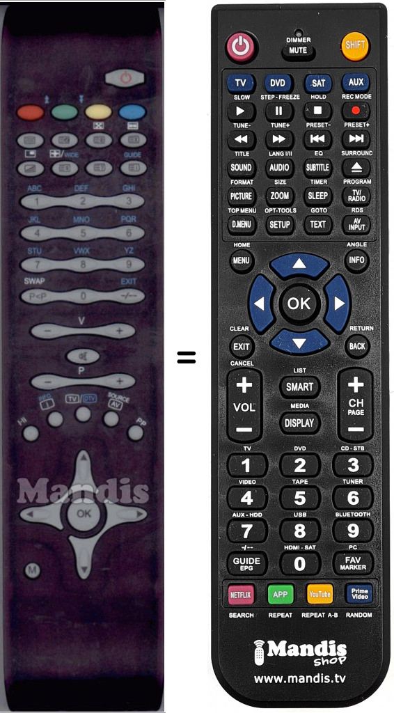 Telecomando che sostituisce l’originale in tutte le sue funzioni.