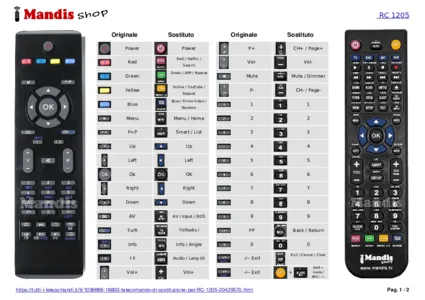 Questo telecomando sostituisce completamente il tuo RC1205B e offre tutte le funzioni dell'originale.