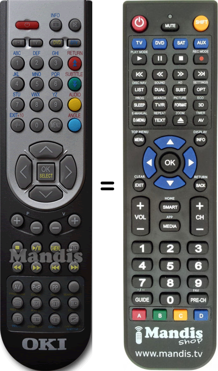 Este comando substitui completamente o seu RC1165 (OKIRC1165) e oferece todas as funções do original.