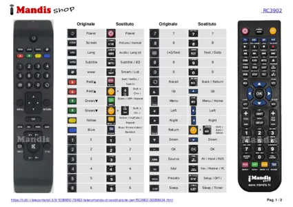 È incluso un documento per aiutarti a utilizzare facilmente il nuovo telecomando, indicando la corrispondenza dei pulsanti.
