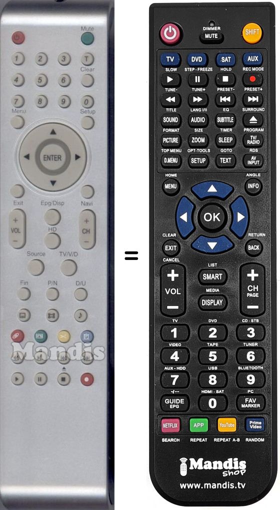 Telecomando che sostituisce l’originale in tutte le sue funzioni.