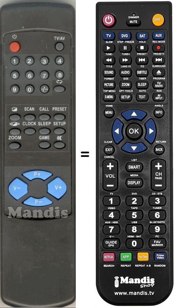 Telecomando che sostituisce l’originale in tutte le sue funzioni.