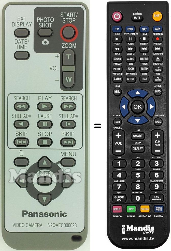 Di seguito, vi mostreremo la corrispondenza tra ciascun pulsante del telecomando originale e il pulsante che svolge la stessa funzione sul telecomando di sostituzione. In alcuni casi, potrebbe essere necessario premere il tasto SHIFT prima di premere un altro pulsante per eseguire determinate azioni. Queste funzioni aggiuntive sono spesso poco utilizzate e sono incluse per facilitare la comprensione del telecomando di sostituzione, o perché il telecomando originale ha più pulsanti rispetto al suo equivalente.
