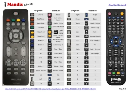È incluso un documento per aiutarti a utilizzare facilmente il nuovo telecomando, indicando la corrispondenza dei pulsanti.