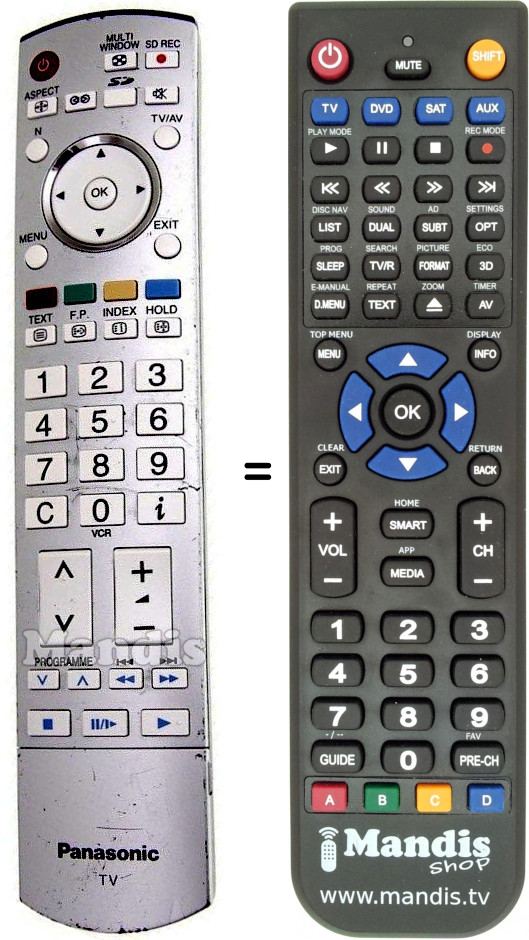 Di seguito, vi mostreremo la corrispondenza tra ciascun pulsante del telecomando originale e il pulsante che svolge la stessa funzione sul telecomando di sostituzione. In alcuni casi, potrebbe essere necessario premere il tasto SHIFT prima di premere un altro pulsante per eseguire determinate azioni. Queste funzioni aggiuntive sono spesso poco utilizzate e sono incluse per facilitare la comprensione del telecomando di sostituzione, o perché il telecomando originale ha più pulsanti rispetto al suo equivalente.