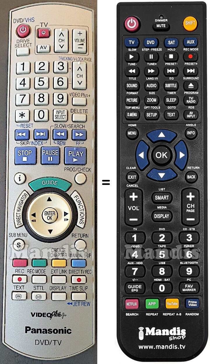Questo telecomando sostituisce completamente il tuo EUR 7659YNO e offre tutte le funzioni dell'originale.