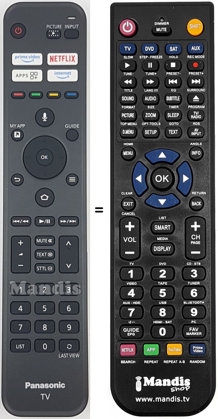 Il telecomando equivalente esegue tutte le funzioni, anche quando il controllo originale controlla vari dispositivi, nel controllo equivalente è possibile programmare diversi dispositivi (TV, DVD, SAT e AUX) in questo modo è possibile includere tutte le funzioni del telecomando originale. Se vedi il manuale dei tasti (istruzioni sul telecomando) puoi verificare che tutte le funzioni siano presenti.