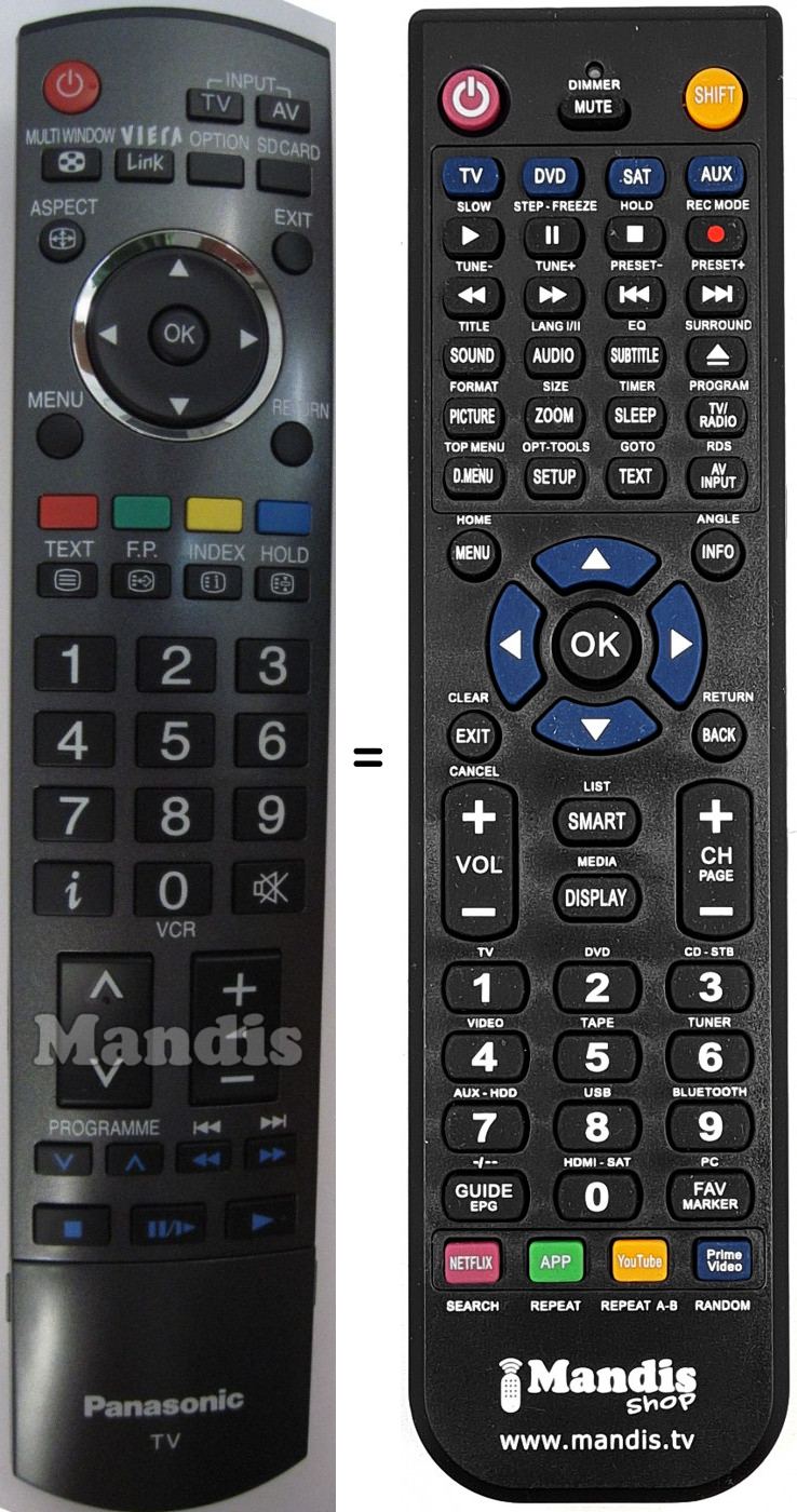 Telecomando che sostituisce l’originale N2QAYB000116 in tutte le sue funzioni.