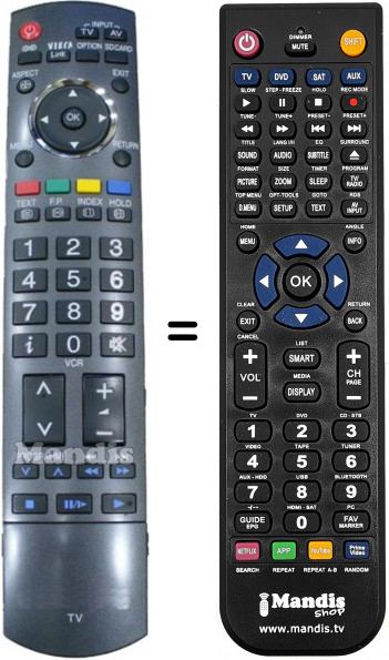 Telecomando che sostituisce l’originale N2QAYB000182 in tutte le sue funzioni.