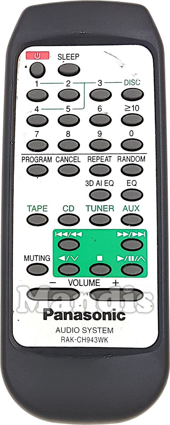 Telecomando originale RAK-CH943WK che serve per impianto hi-fi della marca Panasonic. Si tratta di un modello originale di telecomando.