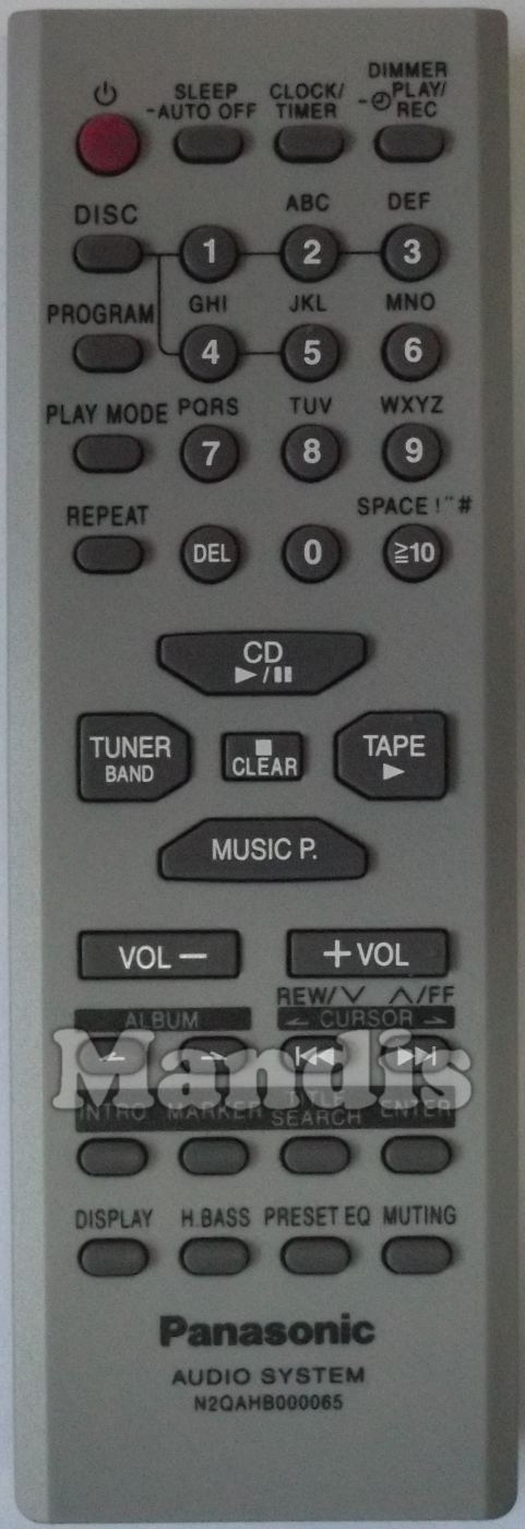 Telecomando originale N2QAHB000065 che serve per impianto hi-fi della marca Panasonic. Si tratta di un modello originale di telecomando.