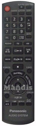 Telecomando originale N2QAYB000388 che serve per impianto hi-fi della marca Panasonic. Si tratta di un modello originale di telecomando.