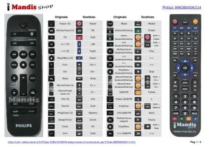 È incluso un documento per aiutarti a utilizzare facilmente il nuovo telecomando, indicando la corrispondenza dei pulsanti.