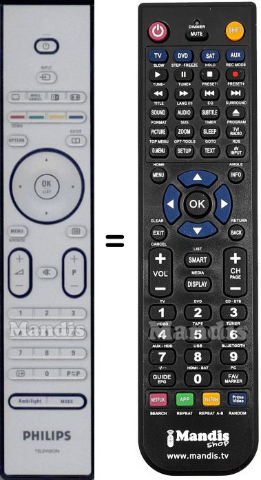 Questo telecomando sostituisce completamente il tuo RC4450/01B (312814719482) e offre tutte le funzioni dell'originale.
