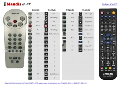 Questo telecomando sostituisce completamente il tuo RC8205 01 e offre tutte le funzioni dell'originale.