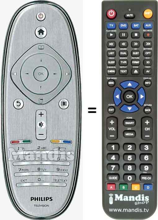 Di seguito, vi mostreremo la corrispondenza tra ciascun pulsante del telecomando originale e il pulsante che svolge la stessa funzione sul telecomando di sostituzione. In alcuni casi, potrebbe essere necessario premere il tasto SHIFT prima di premere un altro pulsante per eseguire determinate azioni. Queste funzioni aggiuntive sono spesso poco utilizzate e sono incluse per facilitare la comprensione del telecomando di sostituzione, o perché il telecomando originale ha più pulsanti rispetto al suo equivalente.