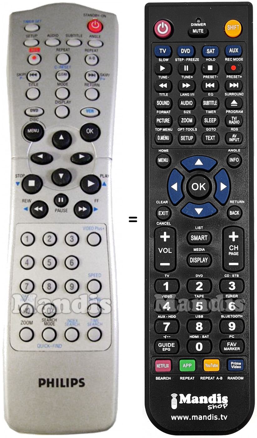 Questo telecomando sostituisce completamente il tuo DVD740VR (996500014781) e offre tutte le funzioni dell'originale.