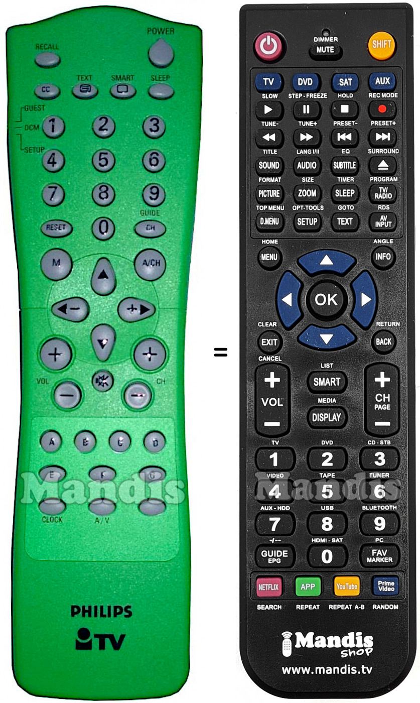 Di seguito, vi mostreremo la corrispondenza tra ciascun pulsante del telecomando originale e il pulsante che svolge la stessa funzione sul telecomando di sostituzione. In alcuni casi, potrebbe essere necessario premere il tasto SHIFT prima di premere un altro pulsante per eseguire determinate azioni. Queste funzioni aggiuntive sono spesso poco utilizzate e sono incluse per facilitare la comprensione del telecomando di sostituzione, o perché il telecomando originale ha più pulsanti rispetto al suo equivalente.