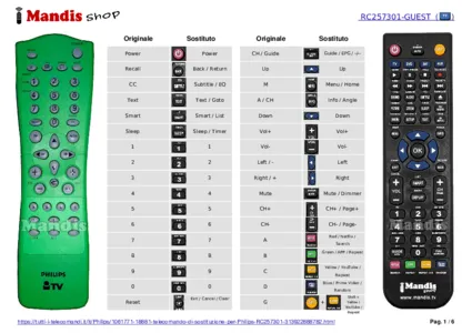 È incluso un documento per aiutarti a utilizzare facilmente il nuovo telecomando, indicando la corrispondenza dei pulsanti.