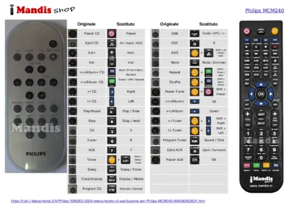 Di seguito, vi mostreremo la corrispondenza tra ciascun pulsante del telecomando originale e il pulsante che svolge la stessa funzione sul telecomando di sostituzione. In alcuni casi, potrebbe essere necessario premere il tasto SHIFT prima di premere un altro pulsante per eseguire determinate azioni. Queste funzioni aggiuntive sono spesso poco utilizzate e sono incluse per facilitare la comprensione del telecomando di sostituzione, o perché il telecomando originale ha più pulsanti rispetto al suo equivalente.
