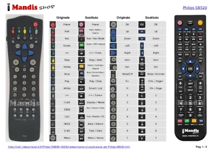Questo telecomando sostituisce completamente il tuo SBCRP520 e offre tutte le funzioni dell'originale.