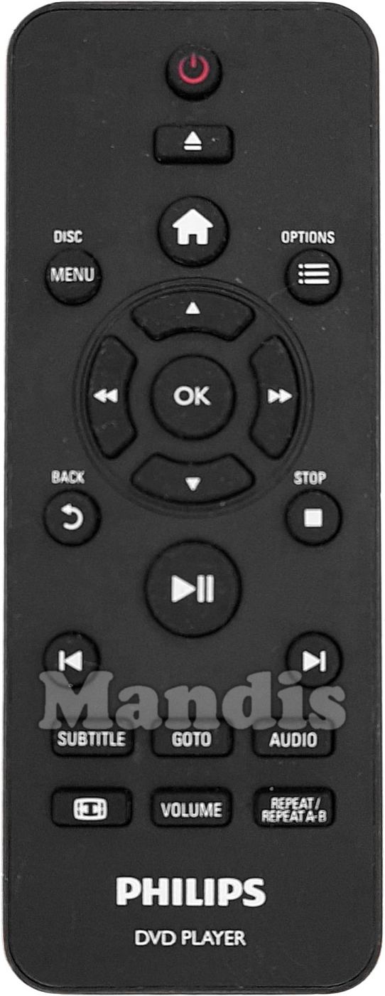 Power, Eject, Menu / Disc, Home, Options, Up, Down, Right / >>, Left / <<, OK, Back, Stop, Play / Pause, I<, >I, Subtitle, Goto, Audio, Aspect, Volume, Repeat / Repeat A-B
