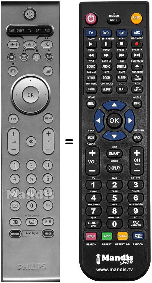Telecomando che sostituisce l’originale in tutte le sue funzioni.