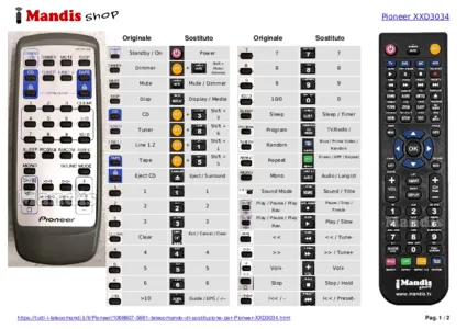 Questo telecomando sostituisce completamente il tuo XXD3034 e offre tutte le funzioni dell'originale.