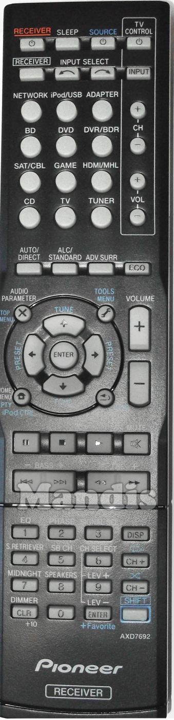 Telecomando originale AXD7692 (8300769200010-IL) della marca Pioneer. Si tratta di un modello originale di telecomando.