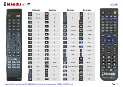 È incluso un documento per aiutarti a utilizzare facilmente il nuovo telecomando, indicando la corrispondenza dei pulsanti.