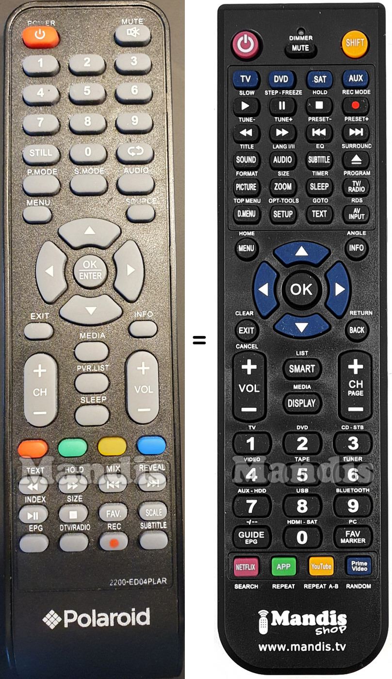 Questo telecomando sostituisce completamente il tuo 2200-ED04PLAR e offre tutte le funzioni dell'originale.