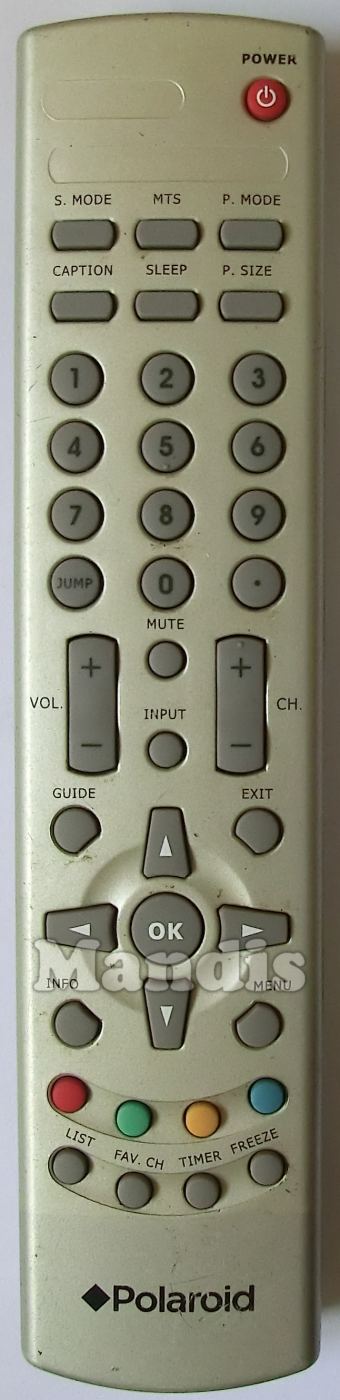Power, S.Mode, MTS, P.Mode, Caption, Sleep, P.Size, 1, 2, 3, 4, 5, 6, 7, 8, 9, 0, Jump, ·, Mute, Input, Vol+, Vol-, CH+, CH-, Guide, Exit, Up, Down, Left, Right, OK, Info, Menu, Red, Green, Yellow, Blue, List, FAV.CH, Timer, Freeze
