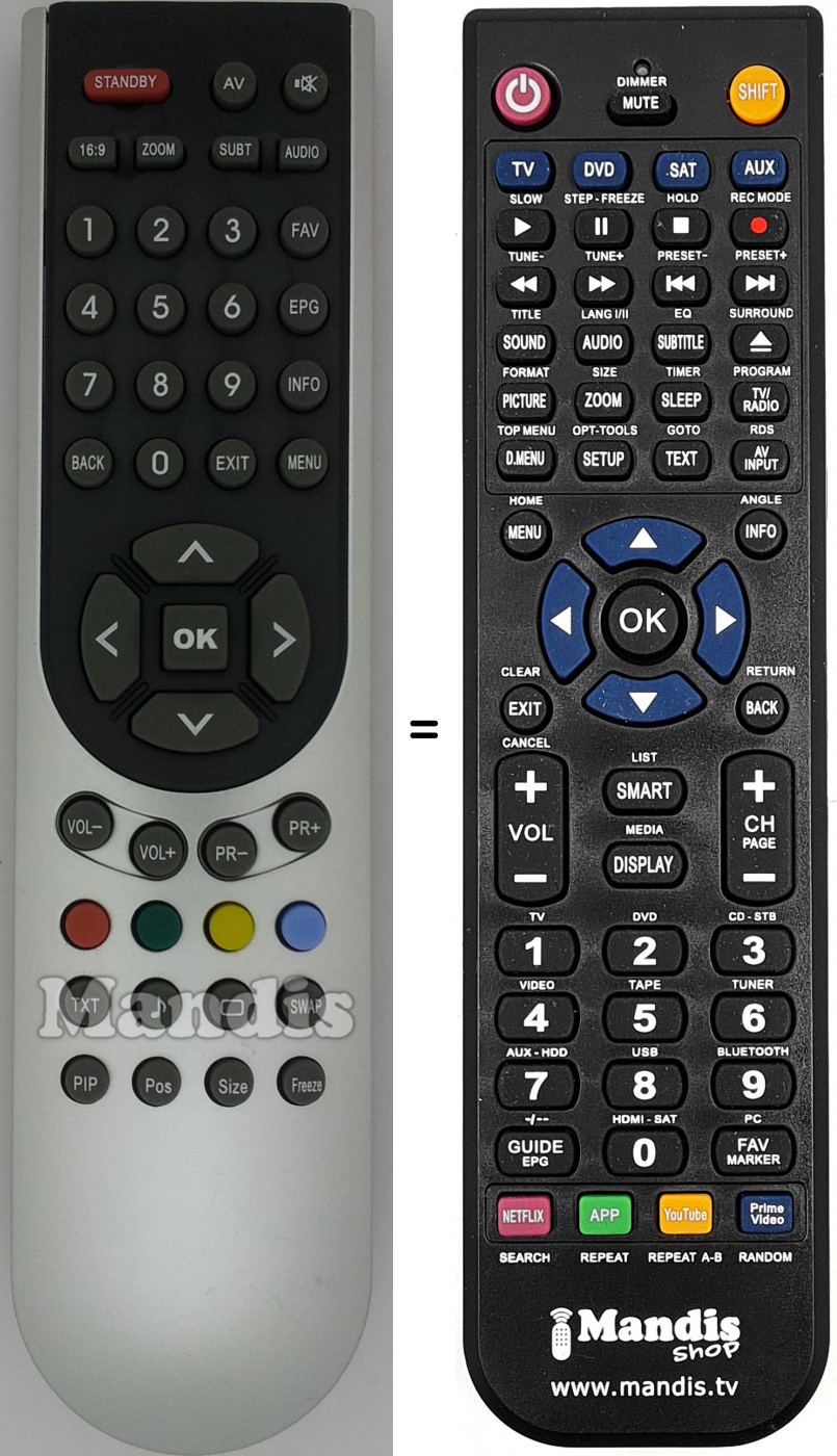 Telecomando che sostituisce l’originale in tutte le sue funzioni.