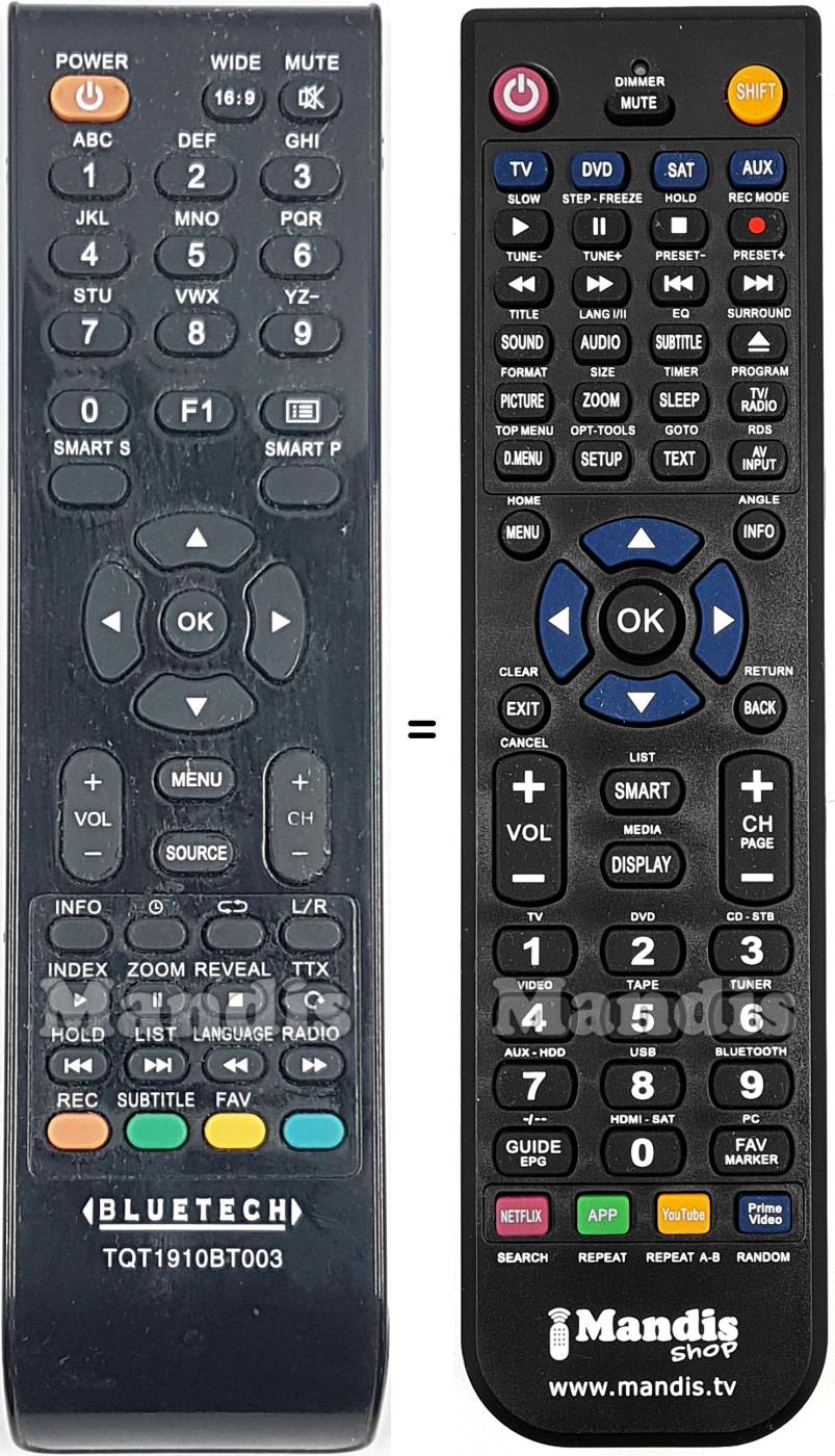 Questo telecomando sostituisce completamente il tuo TQT1910BT003 e offre tutte le funzioni dell'originale.