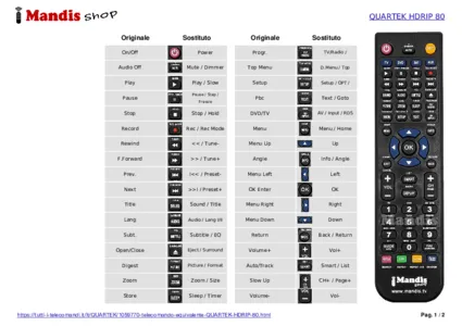 Inizio > Marche > Telecomandi QUARTEK > Telecomando per QUARTEK HDRIP 80 > Distribuzione interattiva dei tasti QUARTEK HDRIP 80