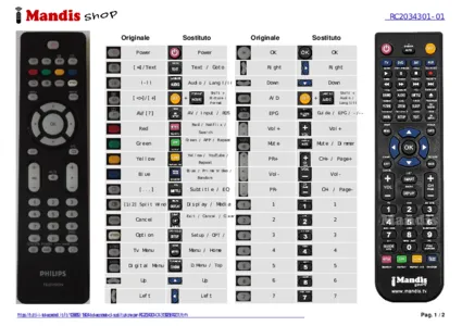 È incluso un documento per aiutarti a utilizzare facilmente il nuovo telecomando, indicando la corrispondenza dei pulsanti.