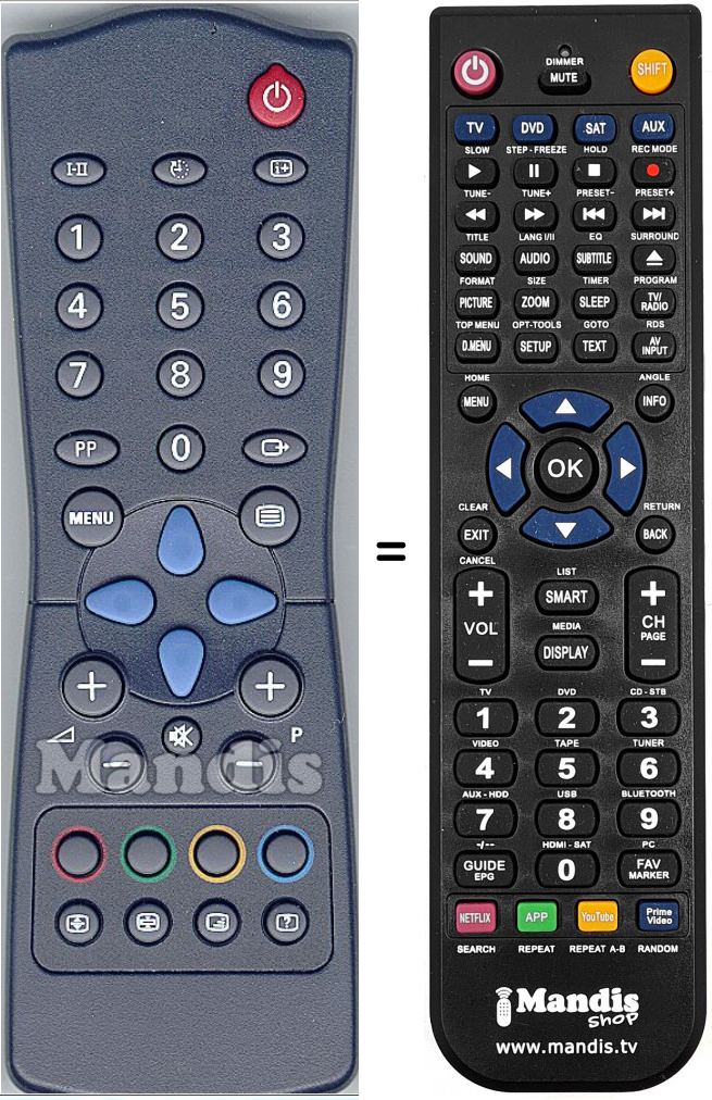 Telecomando che sostituisce l’originale in tutte le sue funzioni. Non si tratta di un telecomando universale ma di un telecomando che sostituisce l’originale. Riceverà il telecomando completamente pronto per il suo funzionamento, deve solo mettere le pile. Non è necessario programmarlo. Le diamo garanzia totale che il telecomando compirà le stesse funzioni del telecomando originale.