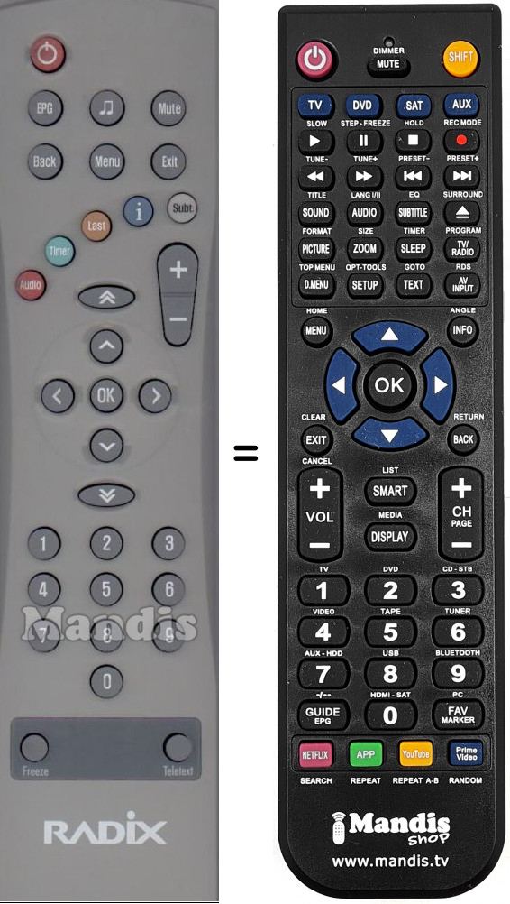 Telecomando che sostituisce l’originale ALPHA3000PVR in tutte le sue funzioni.