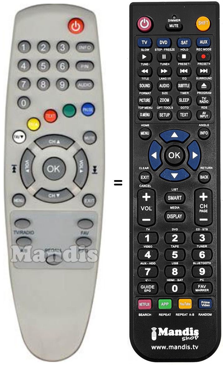 Telecomando che sostituisce l’originale in tutte le sue funzioni.